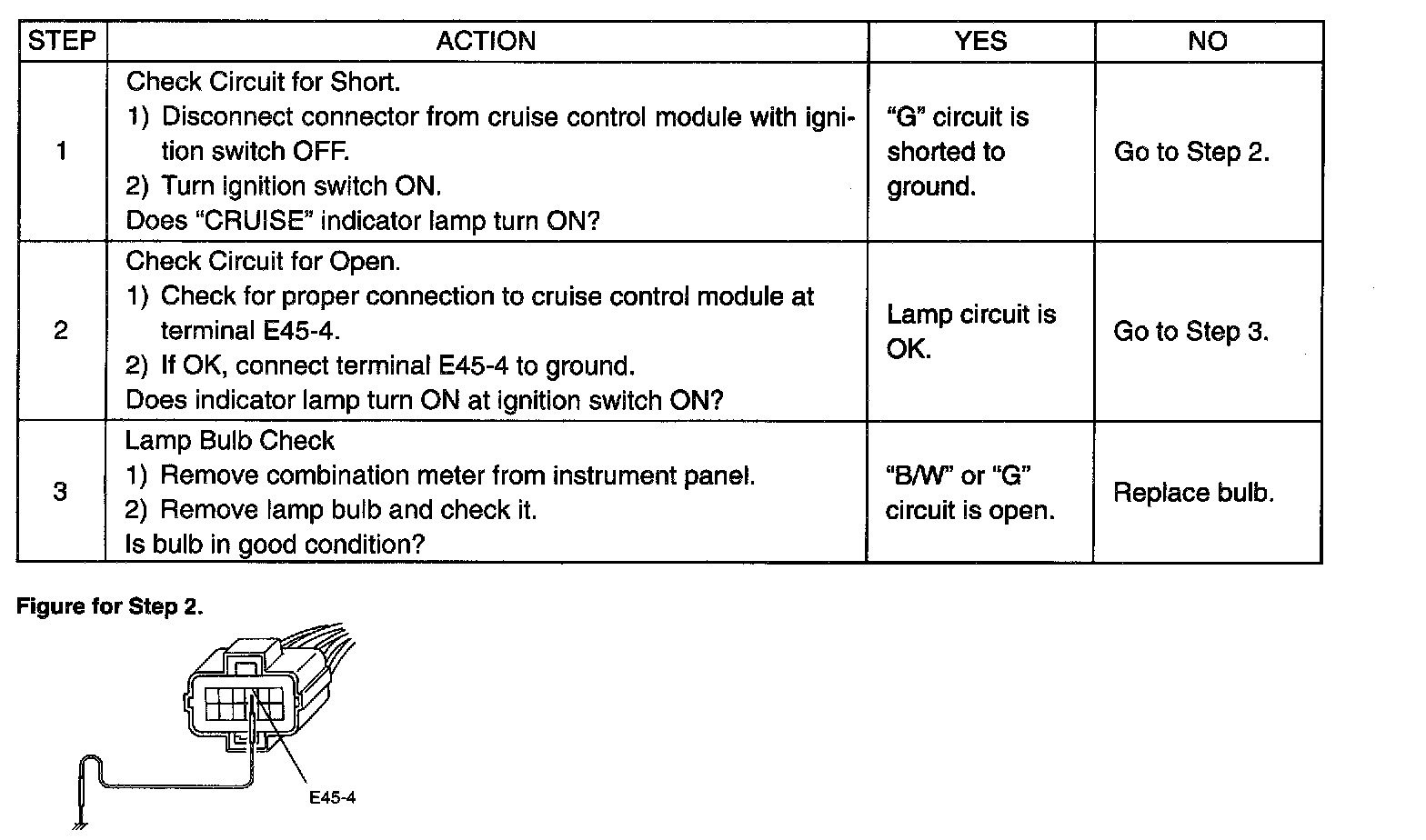"Cruise" Indicator Lamp Circuit Check (Step 1 - 3):
