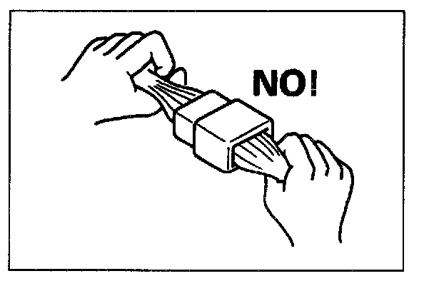 - When disconnecting connectors, never pull the wiring harnesses. Unlock the connector lock first and then pull them apart by holding connectors themselves.