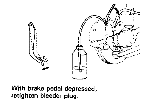 6. When bubbles stop, depress and hold brake pedal and tighten bleeder plug.