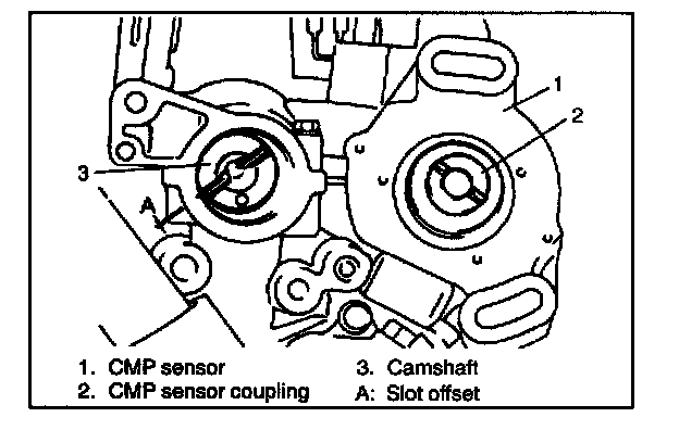 Fit the dog of CMP sensor coupling into the slots of camshaft, when installing. The dogs of CMP sensor coupling are offset. Therefore, if the dogs can not be fitted into the slots, turn the CMP sensor shaft by 180 degree and try again.