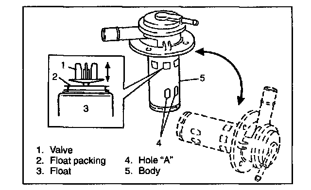4. Put refuel vapor control valve in kerosene and check that float moves smoothly to contact valve seat.