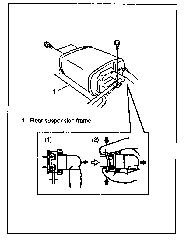 7. Support suspension frame with a suitable hydraulic jack and loosen suspension frame bolts until each bolt projects about 2 cm (0.8 in.).