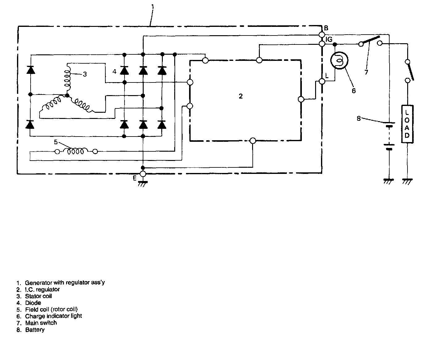 The generator is a small and high performance type with an IC regulator incorporated.