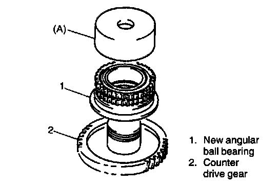 1. Press new angular ball bearing into counter drive gear using special tool.