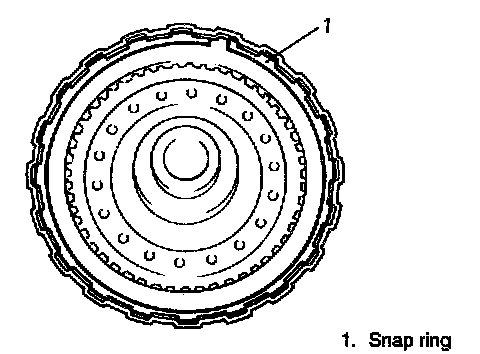 ^ Do not align opening in snap ring with lug of forward clutch return spring subassembly at its retainer.