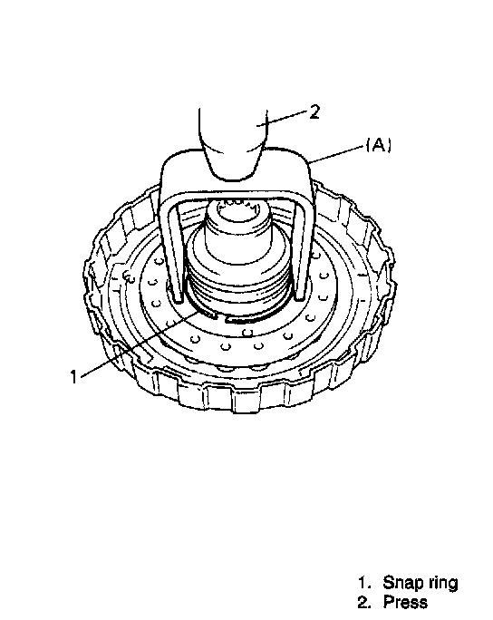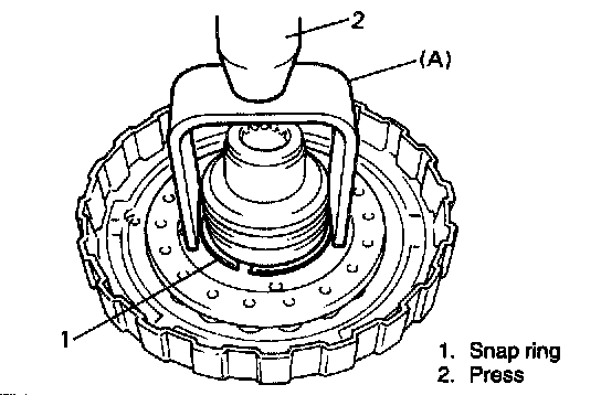 CAUTION: Be careful when applying pressure, for over pressure will cause plate section of forward clutch return spring subassembly to deform.