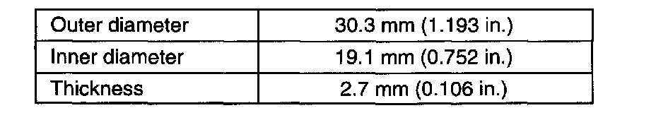 - 1.6 liter model: 0.76 - 1.04 mm (0.03 - 0.040 inch)