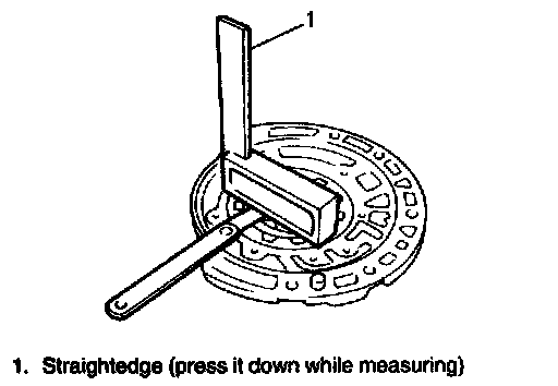 3. Check side clearance of both gears. Using a straightedge and a feeler gauge, measure side clearance between gear and pump body.