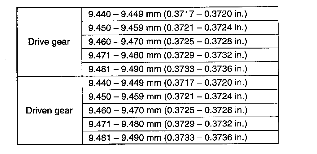 Drive gears and driven gears are different in thickness as listed.