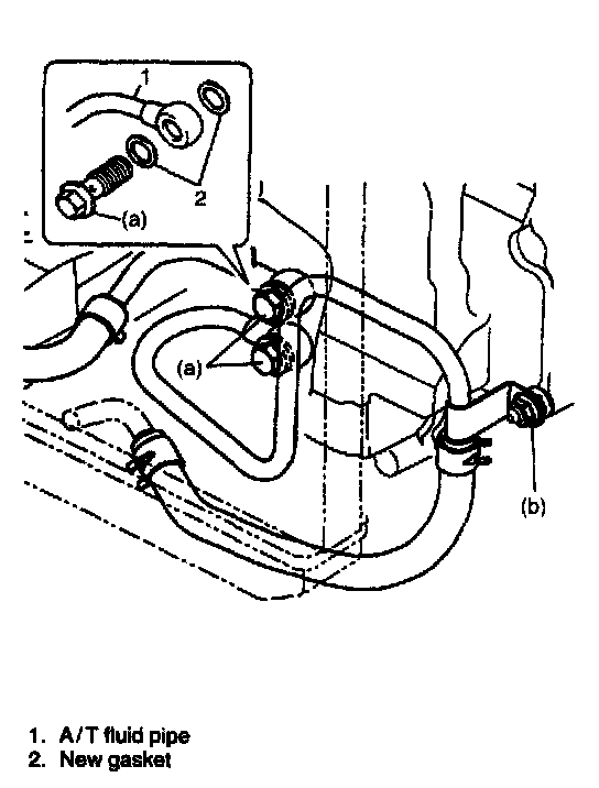 NOTE: Make sure to use new gaskets for A/T fluid pipe union bolts.