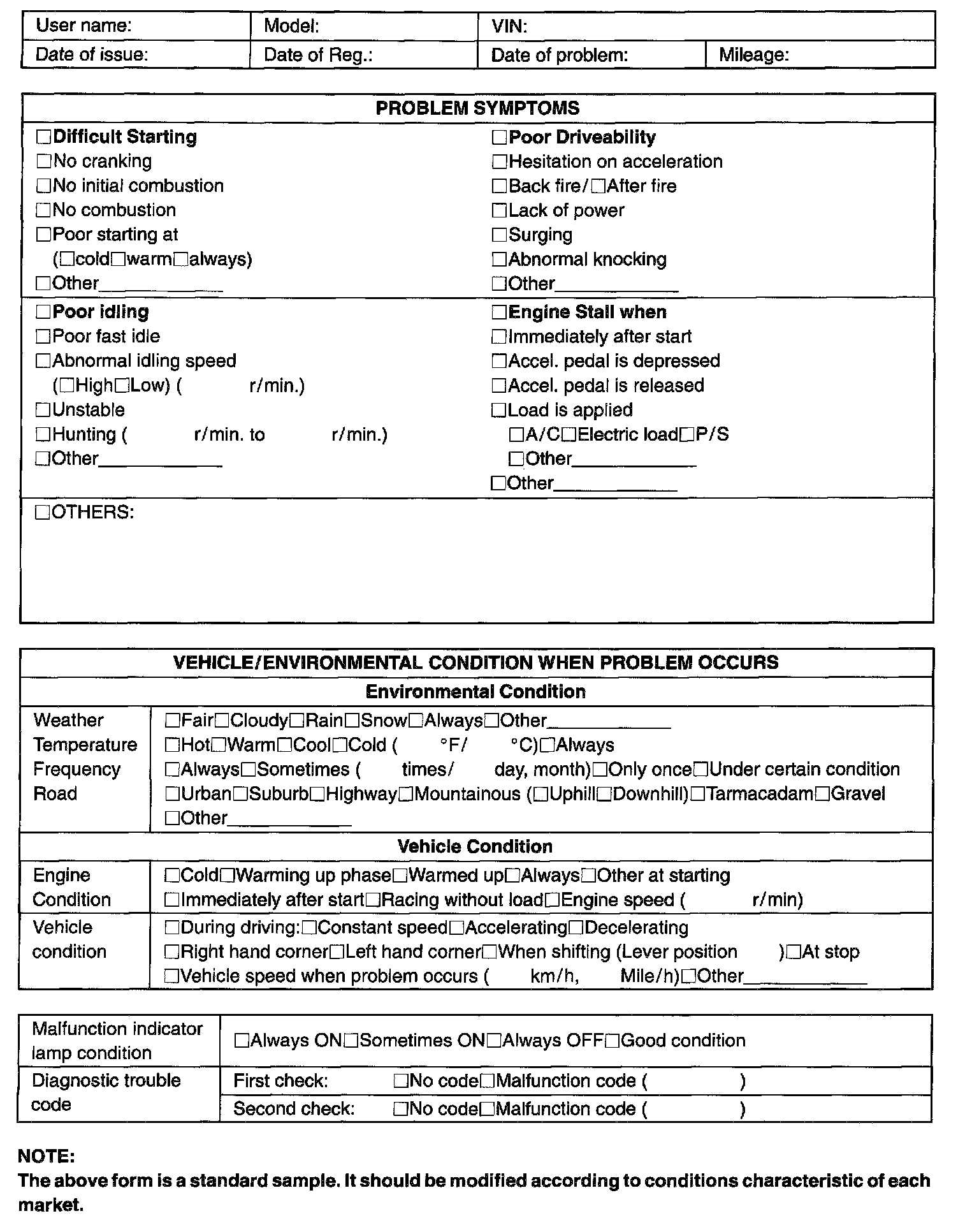 Customer Problem Inspection Form (Example)