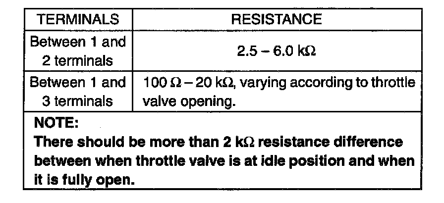 2. Using ohmmeter, check resistance between terminals under each condition given in table.