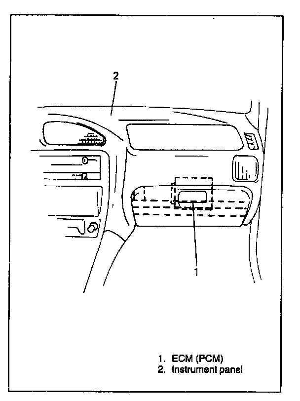 ECM (PCM) is installed to the underside of the instrument panel at the passenger's seat side.