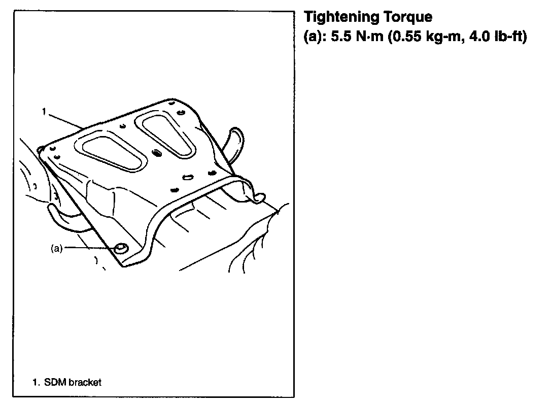 - Never power up the air bag system when the SDM is not rigidly attached to the vehicle. All SDM and mounting bracket fasteners must be carefully torqued to ensure proper operation of the air bag system. The SDM could be activated when powered while not rigidly attached to the vehicle which could cause deployment and result in personal injury.