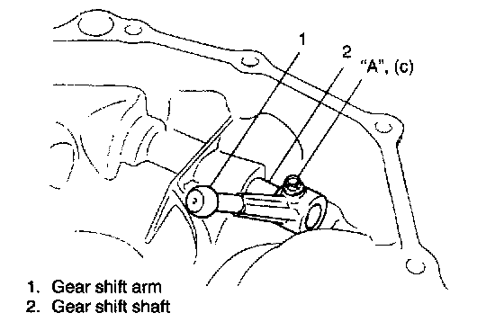 7. Insert gear shift arm in gear shift shaft, then fasten them with bolt applied with thread lock cement.