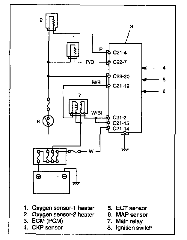 This system controls operation (ON/OFF) of each heater which assists activation of each oxygen sensor. ECM (PCM) turns the each heater of oxygen sensor-1 and -2 ON (to allow the electric current to flow to the oxygen sensor heater) when the engine is running without high-load condition after specified time from engine start.