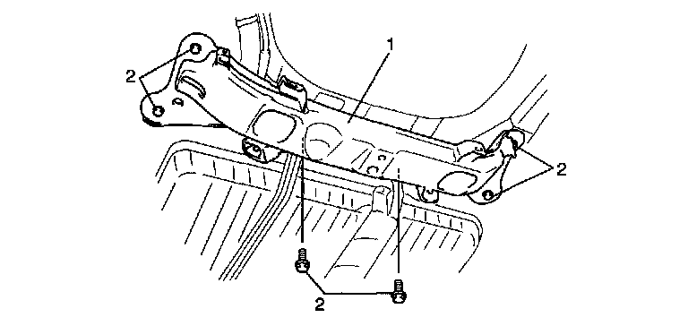 7. Remove suspension frame bolts (2) and suspension frame (1)