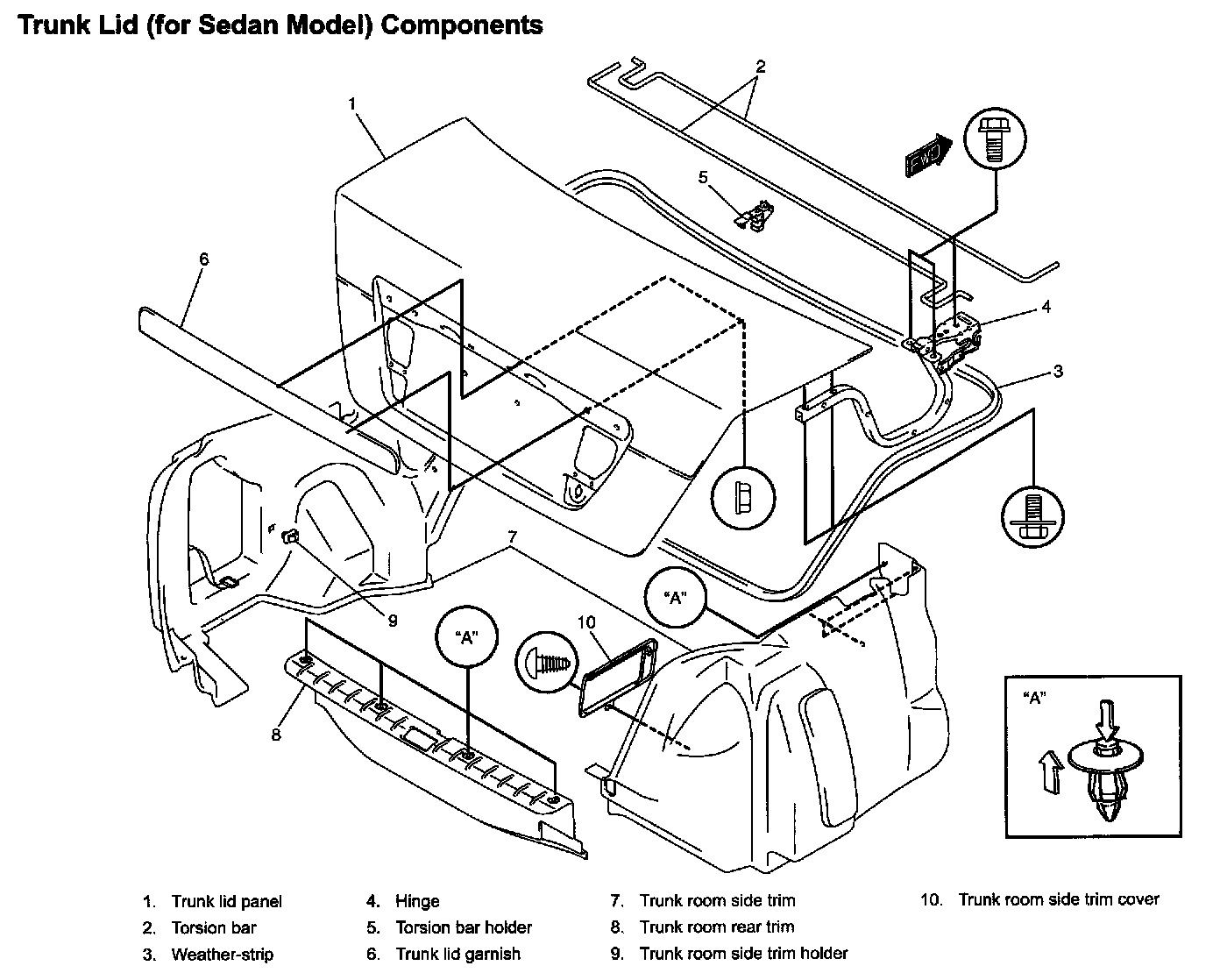 Trunk Lid (for Sedan Model) Components: