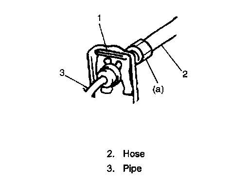 ^ Do not allow pipe and hose to contact hard against vehicle body or other parts.