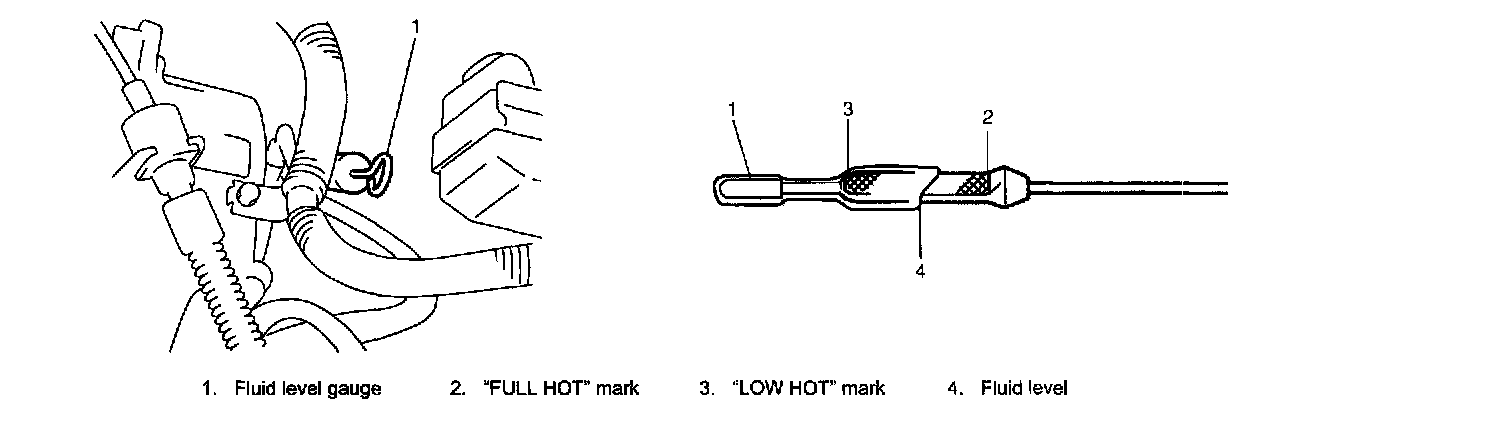 4. Lower vehicle and fill proper amount of an equivalent of DEXRON (R) III or DEXRON (R) IIE