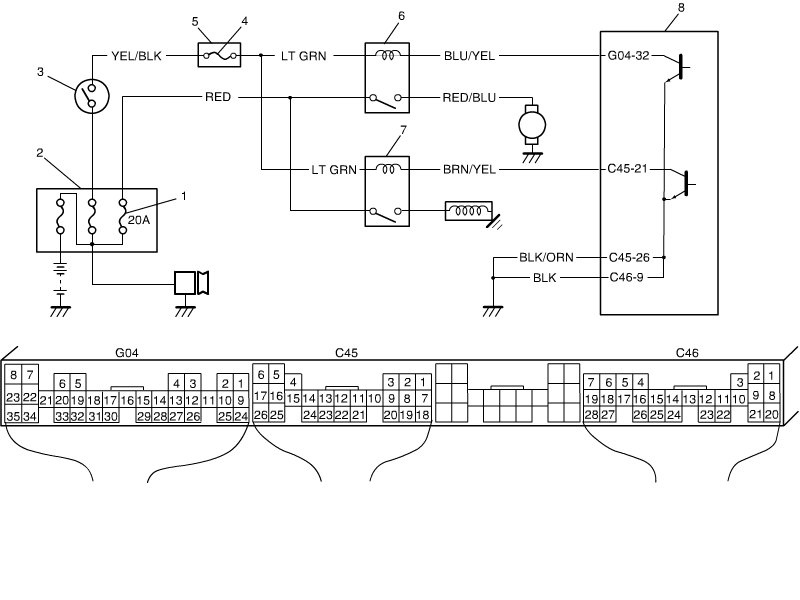Turn ON ignition switch, measure voltage between engine ground to "RED" wire terminal.