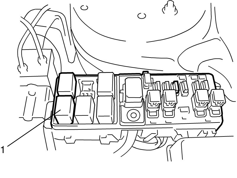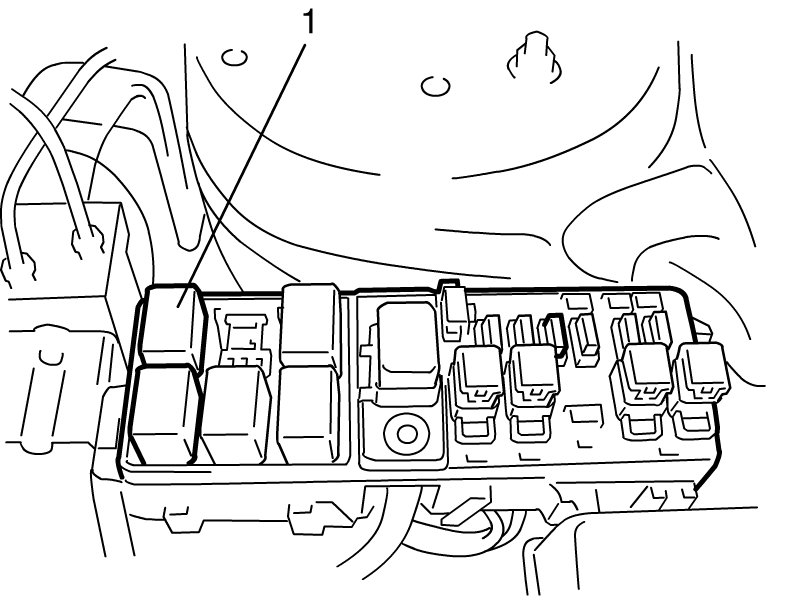 Disconnect A/C condenser fan control relay (1) from fuse / relay box with ignition switch turn OFF.