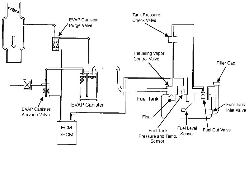 To monitor the EVAP control system, a fuel tank pressure sensor and an EVAP canister air (vent) valve are added to the system.
