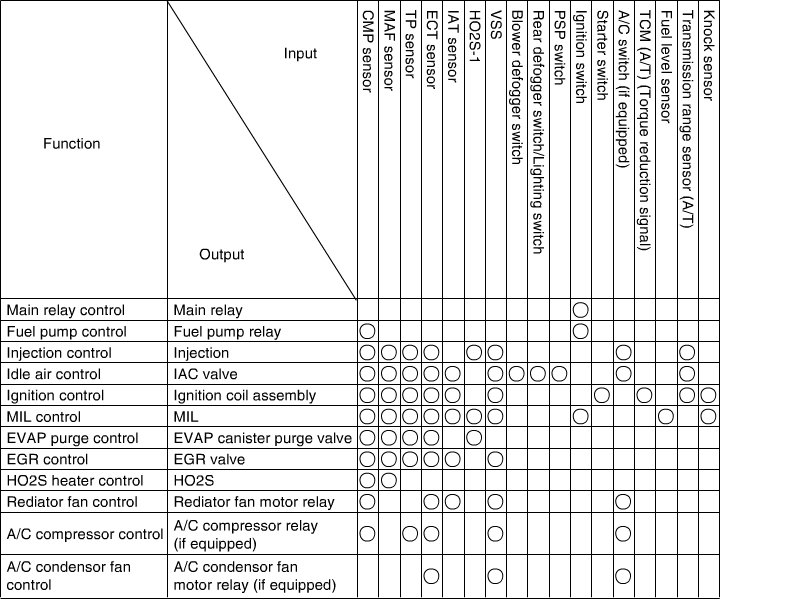 Engine and Emission Control Input / Output Table