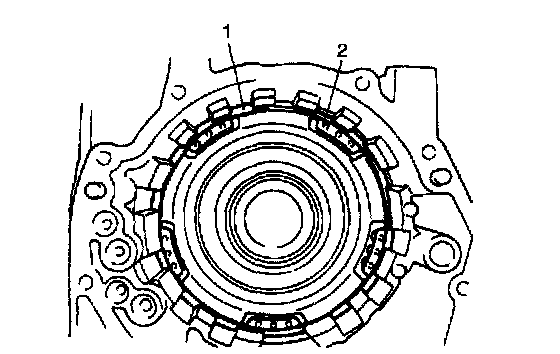 14. Install separator plates "S", friction plates "F" and retaining plates "R" in the following order. R - F - S - F - S - F - S - F - S - F
