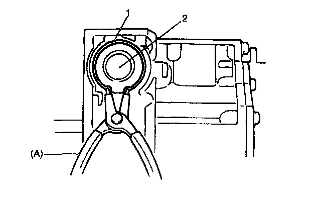 24. Install brake cover (1) to transaxle case with snap ring (2), using snap ring plier.