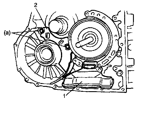 Measure the distance "a" by using vernier (1) and straightedge (2). If out of specification, remove forward clutch, overdrive/coast clutch, front and rear planetary carrier and reinstall them properly.
