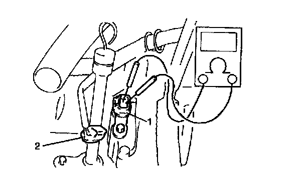 3. Check resistance between output shaft speed sensor (1) terminals.