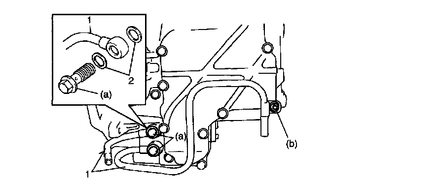 NOTE: Make sure to use new gaskets (2) for A/T fluid pipe union bolts.