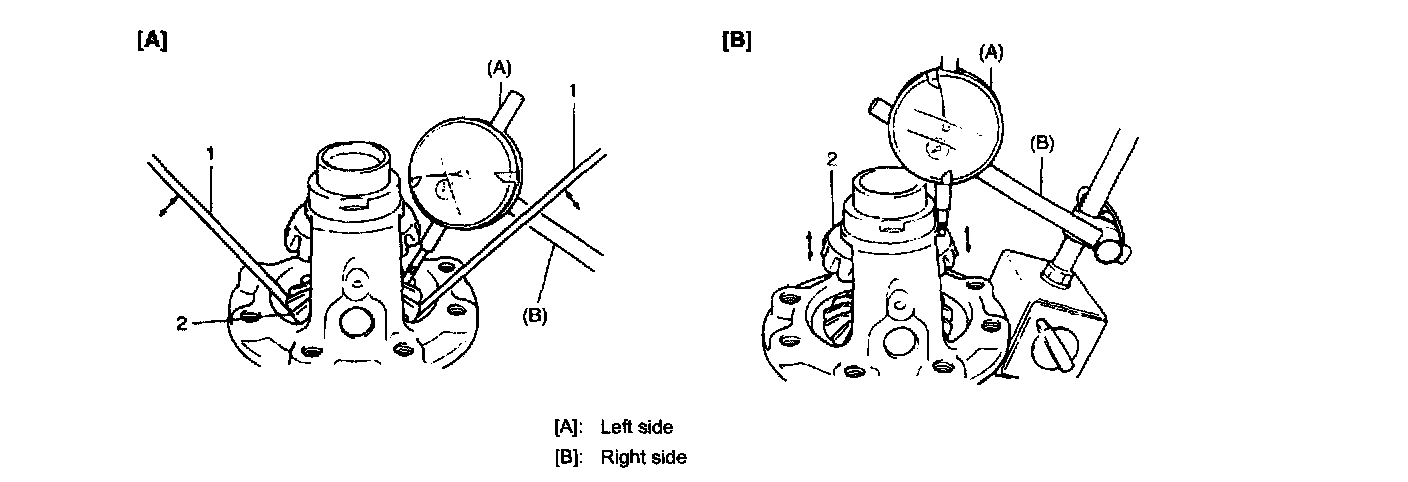 ^ Using similar procedure to the left side, set dial gauge tip to gear (2) shoulder.