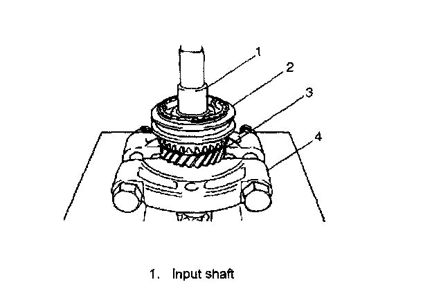 3. To ensure lubrication of input shaft (1), air blow oil holes (2) and make sure that they are free from any obstruction.