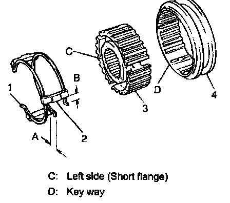 ^ Size of high speed synchronizer sleeve, hub, keys and springs is between those of low speed and 5th speed ones.