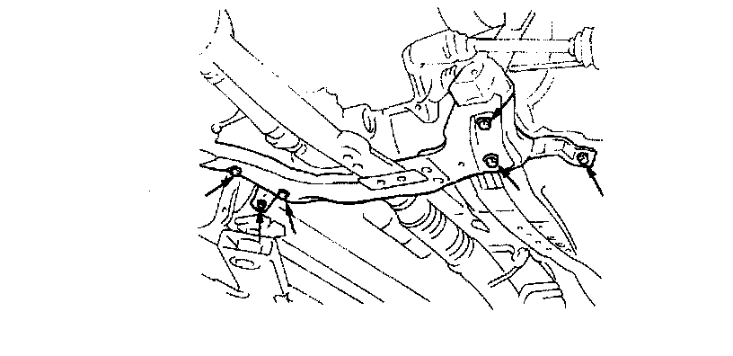 7) Remove engine rear mounting (2) nuts and engine mounting member (3) bolts to separate member from suspension frame (1).