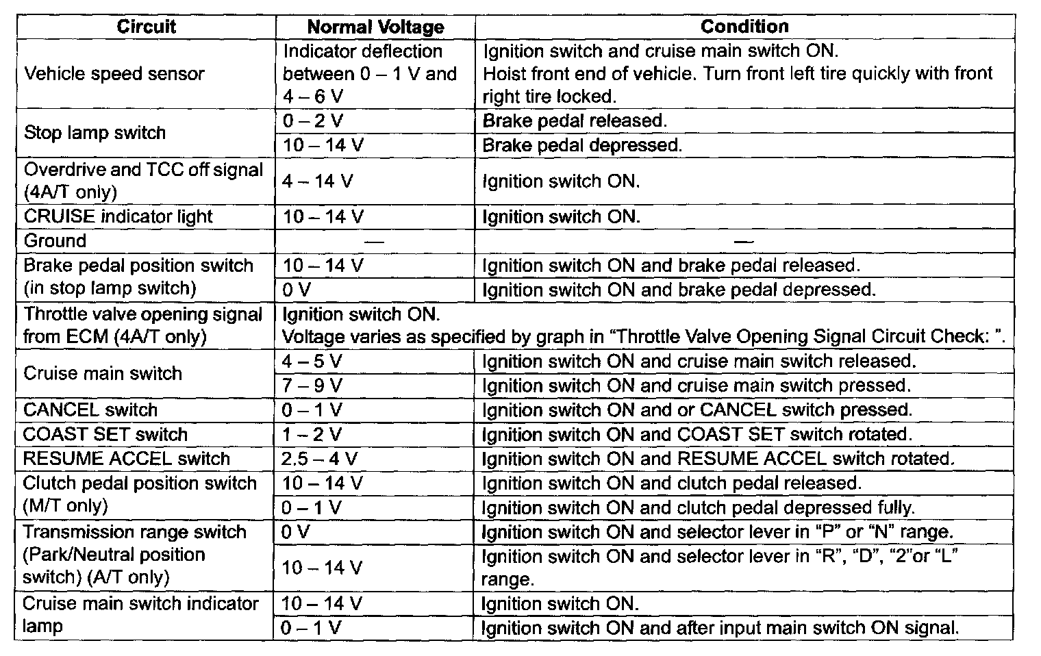 Cruise Control Module and Its Circuit InspectionCAUTION: Cruise control module can not be checked by itself. It is strictly prohibited to connect voltmeter or ohmmeter to cruise control module with coupler disconnected from it.