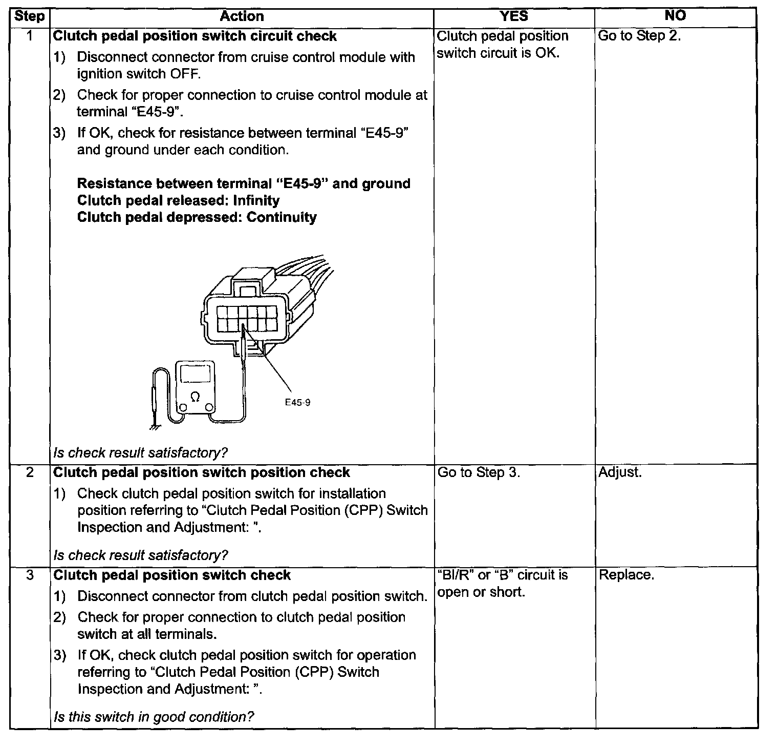 Clutch Pedal Position Switch Circuit Check