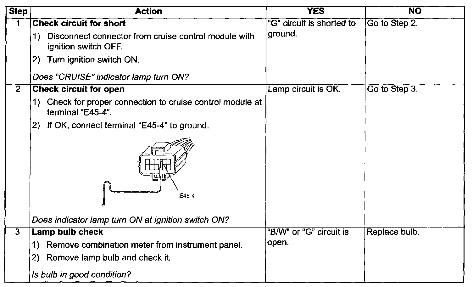 Cruise Indicator Lamp Circuit Check