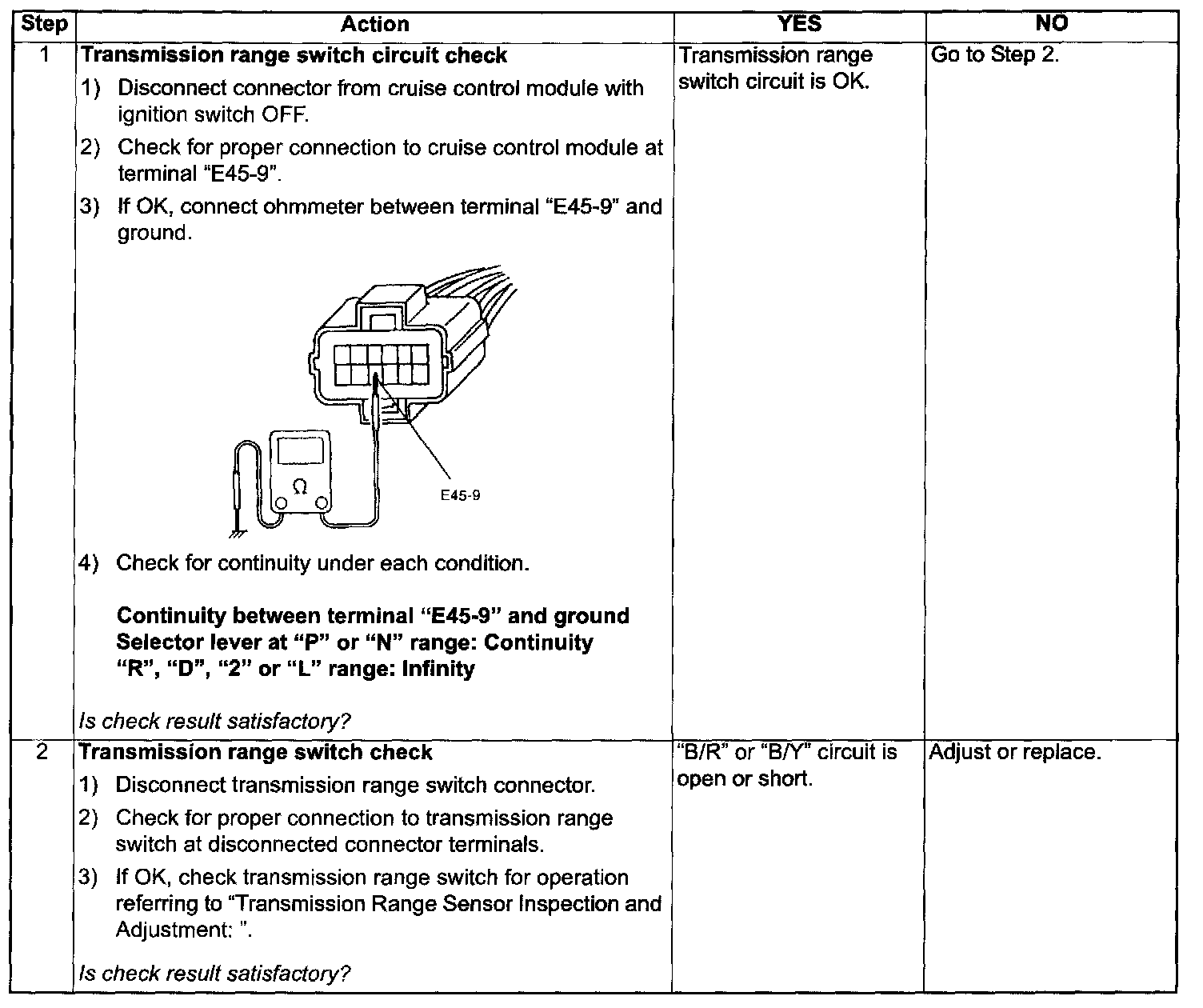 Transmission Range Switch (Park/Neutral Position Switch) Check