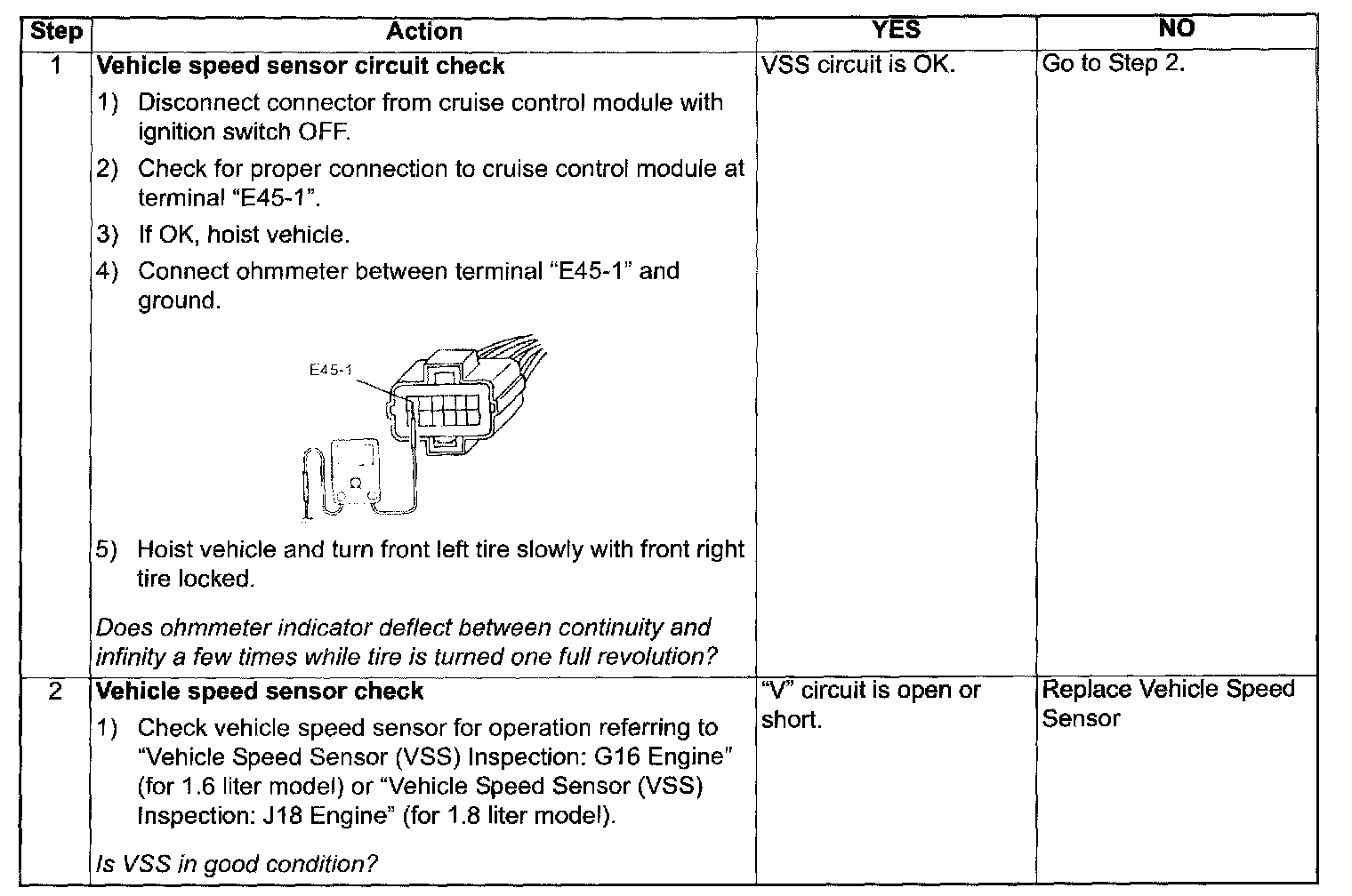 Vehicle Speed Sensor (VSS) Circuit Check
