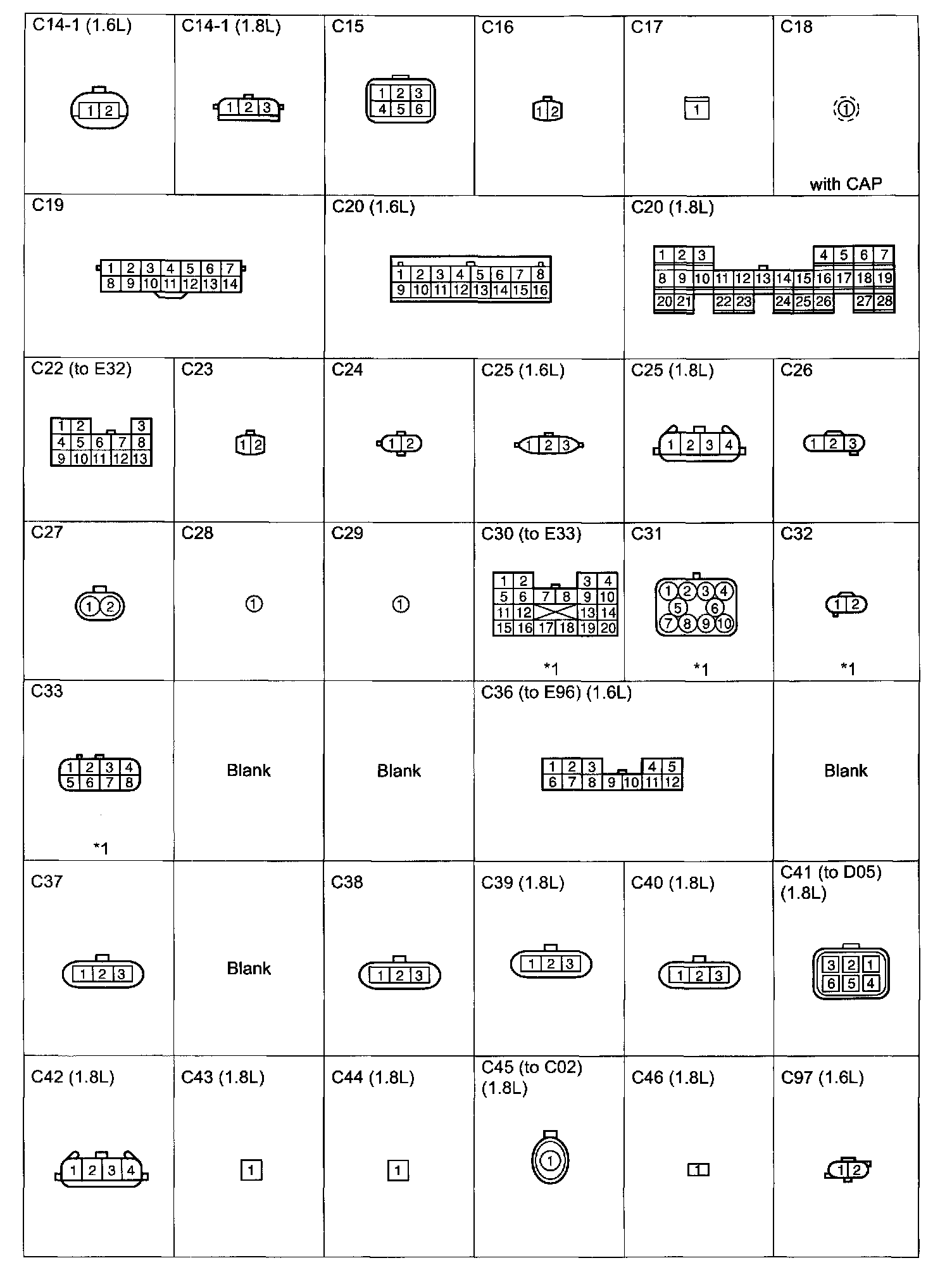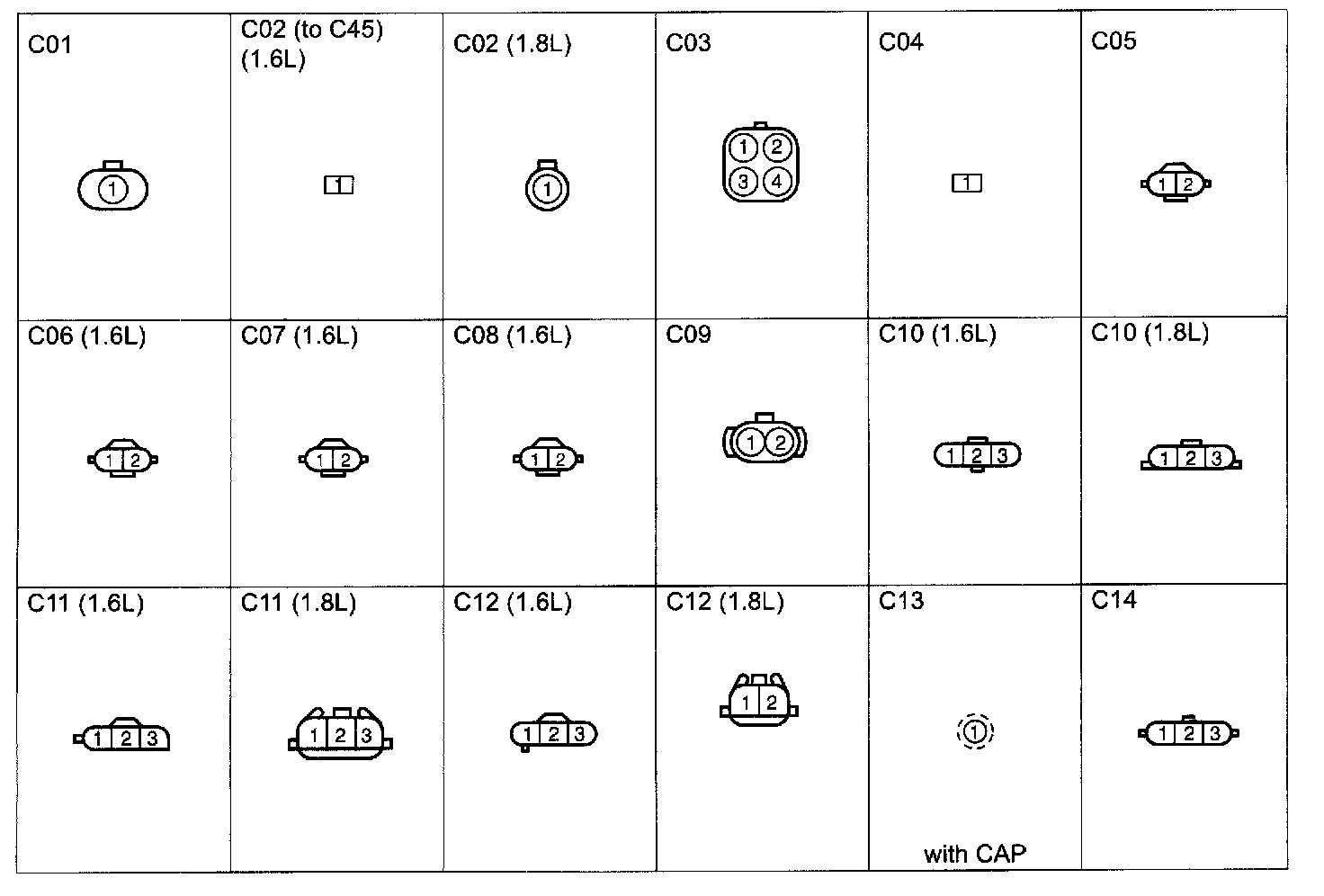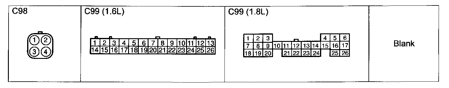 NOTE: The illustrations below show the harness side connectors, but not the component side connectors.NOTE: