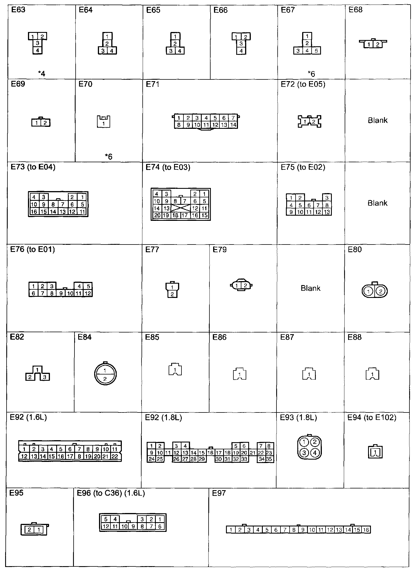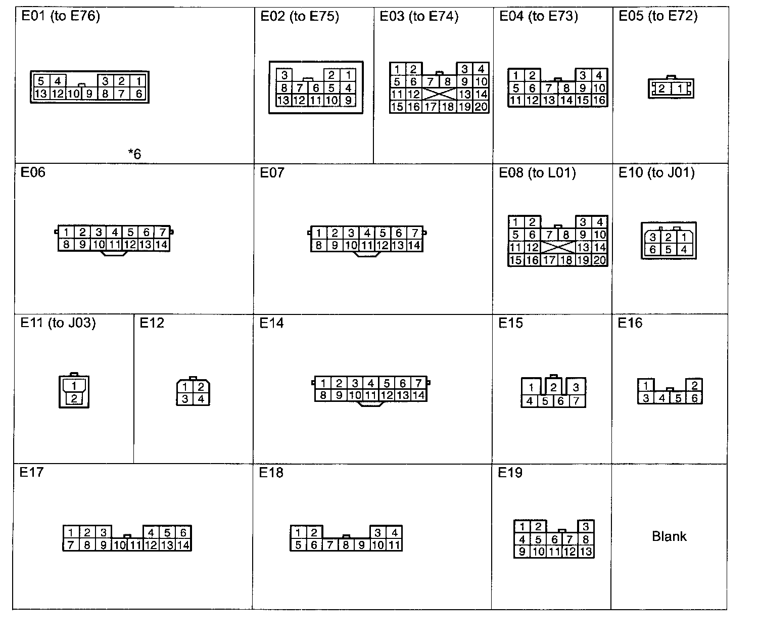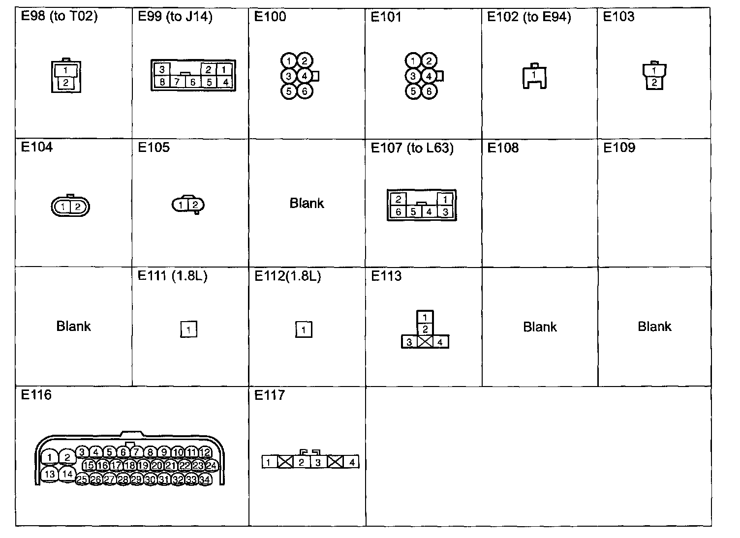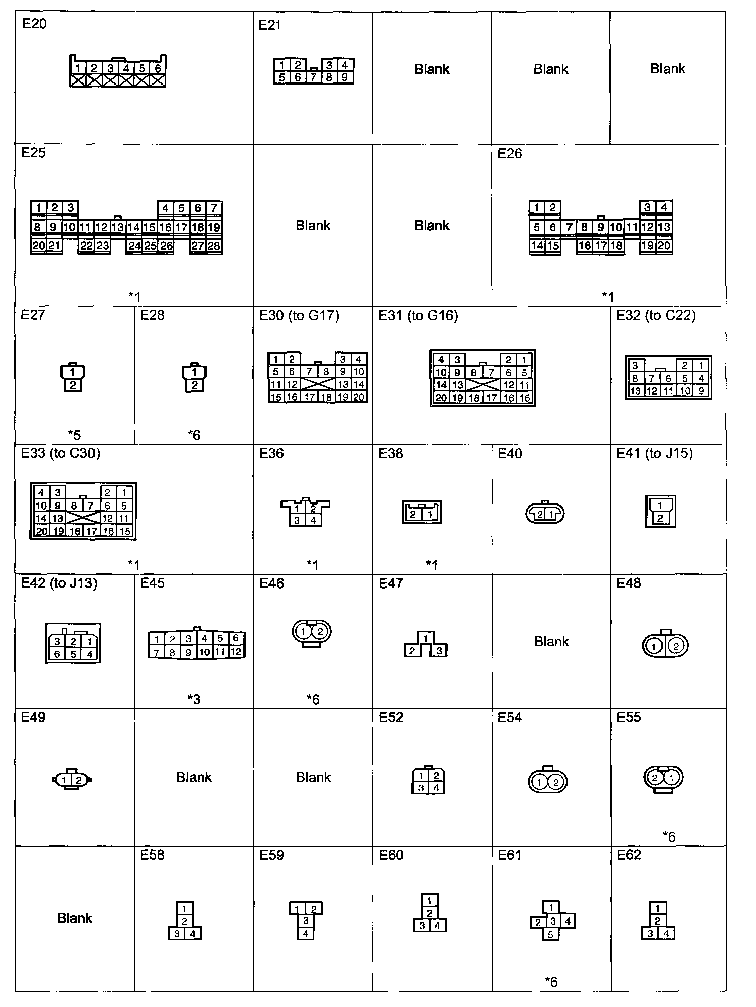 NOTE: The illustrations below show the harness side connectors, but not the component side connectors.NOTE: