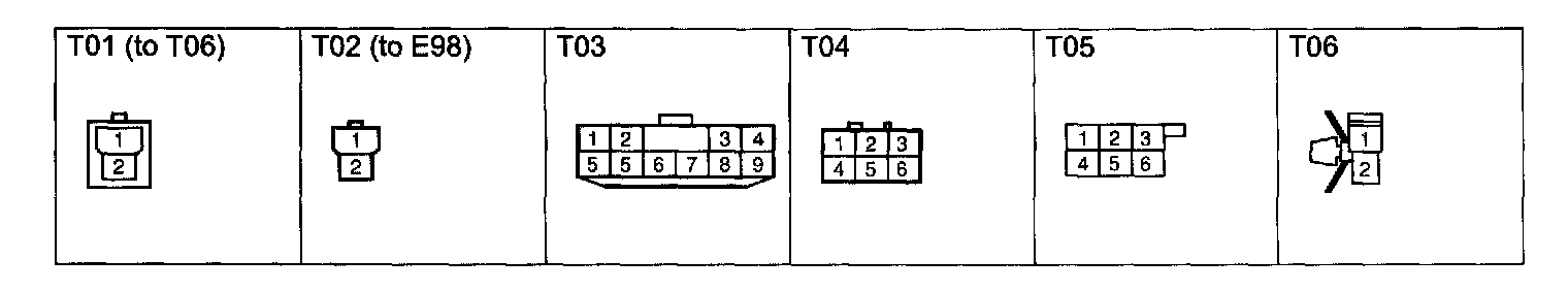 NOTE: The illustrations below show the harness side connectors, but not the component side connectors.NOTE:
