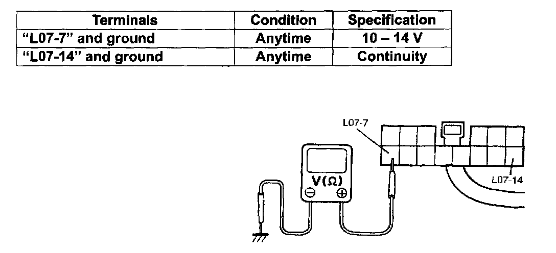 3. Check that the voltage and resistance between the following terminals are specifications. If check result is satisfactory, this circuit is OK.