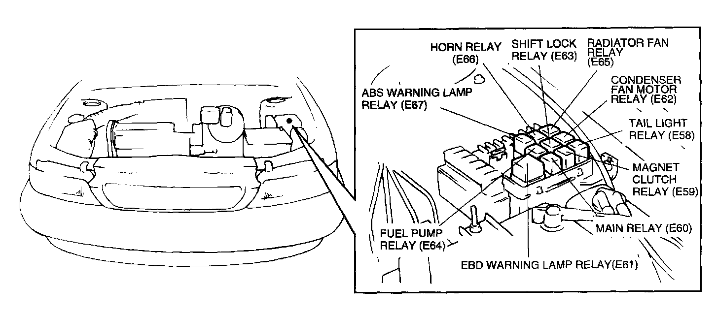 Main Relay (Computer/Fuel System): Locations