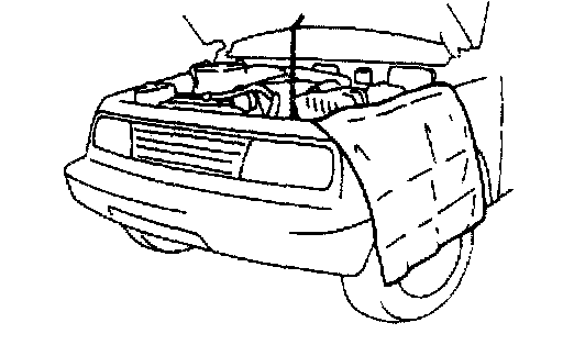 - When it is necessary to do service work with the engine running, make sure that the parking brake is set fully and the transmission is in Neutral (for manual transmission vehicles) or Park (for automatic transmission vehicles), keep hands, hair, clothing, tools, etc. away from the fan and belts when the engine is running.