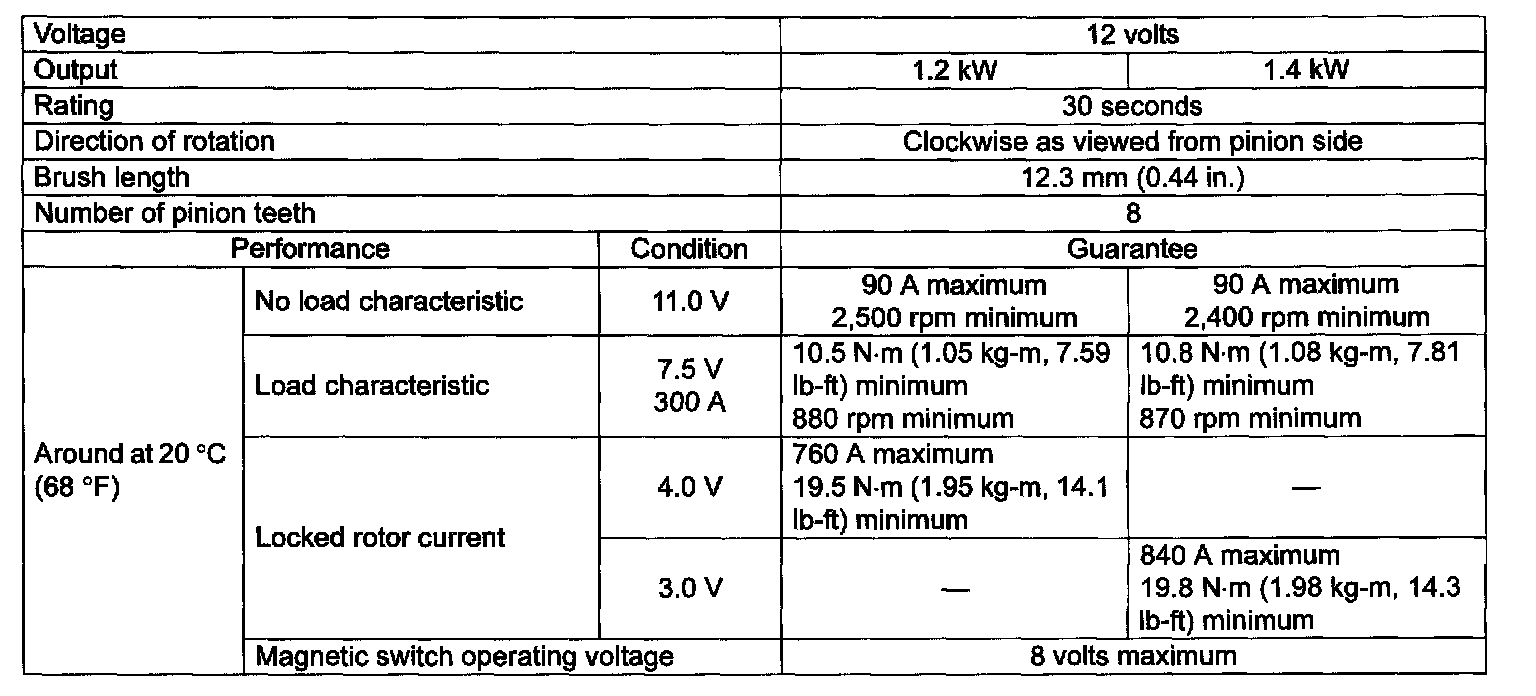 Cranking System Specifications: