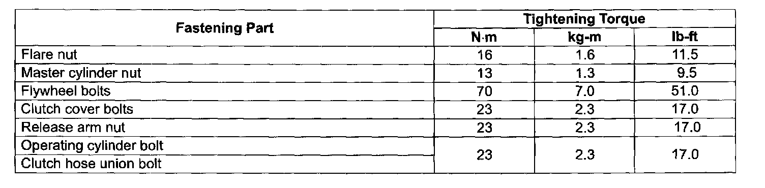 TIGHTENING TORQUE SPECIFICATIONS